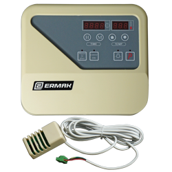 С помощью пульта осуществляется управление электрокаменкой в автоматическом режиме и программируется время работы нагревателя, измеряется и регулируется температура, производится диагностика датчика температуры и в случае необходимости отключается нагрев электрической печи. Пульт управления устанавливается на высоте 1.5 метра в отдельном сухом помещении с температурой окружающей среды до 40°С. Датчик температуры – является важным элементом в электрической схеме, он формирует данные о температуре в системе. Для оптимальной работы датчик температуры должен находиться в нагреваемом помещении на стене на расстоянии 30-50 см от потолка.