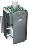 - Мощная горелка (12 кВт) с энергонезависимой автоматикой регулирования и безопасности. С возможностью работы на пропане, при установке дополнительного комплекта жиклеров (опция). Работает в автоматическом режиме по заданной температуре в парилке (+70 .. +120 °C).