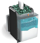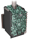 - Каменка открытого типа с большим объемом (до 40 кг камня) и площадью теплопередачи.